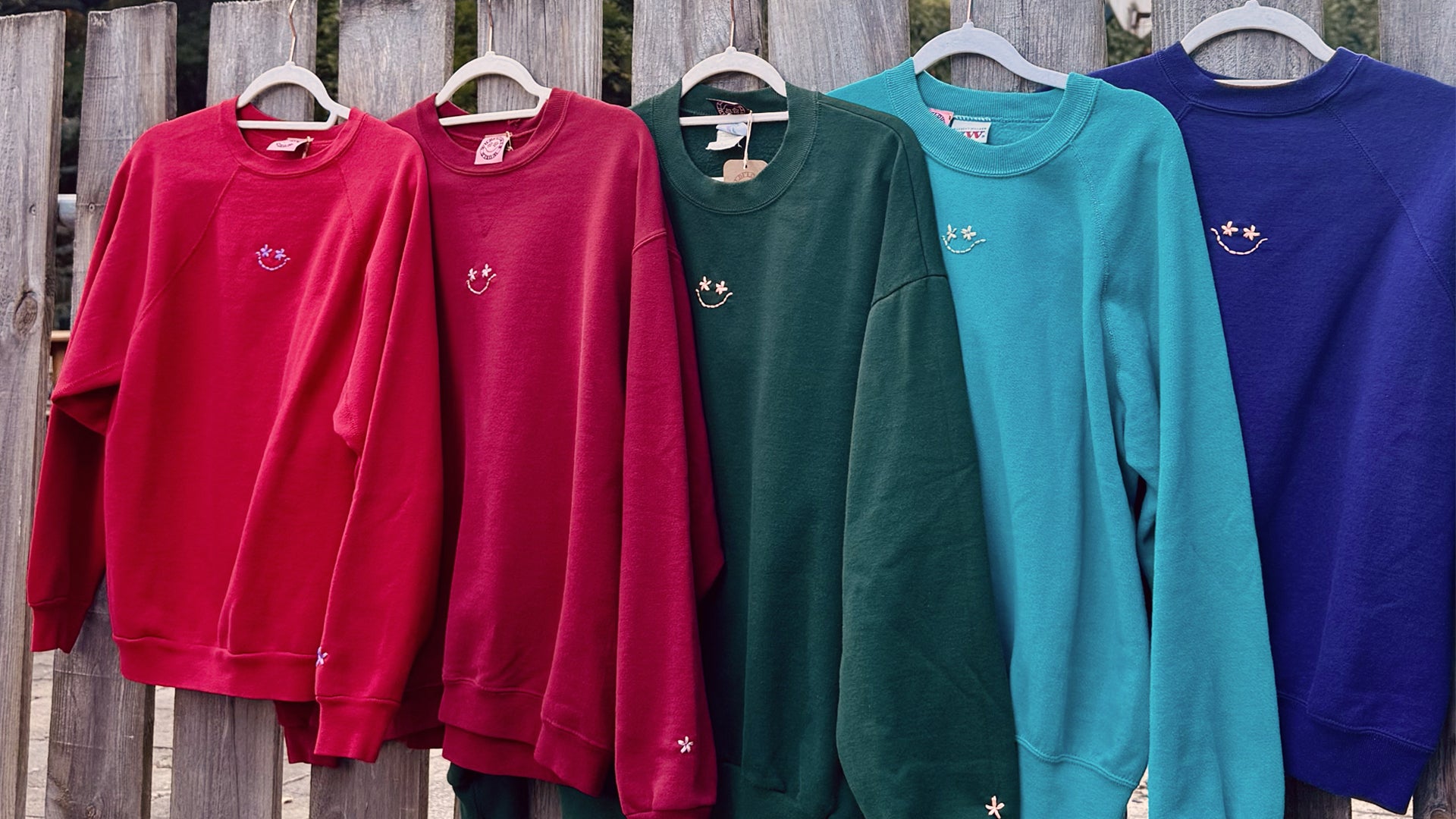 1-of-1 premium upcycled apparel and accessories, featuring our signature free-hand wildflowers, embroidered by hand in Cleveland, OH